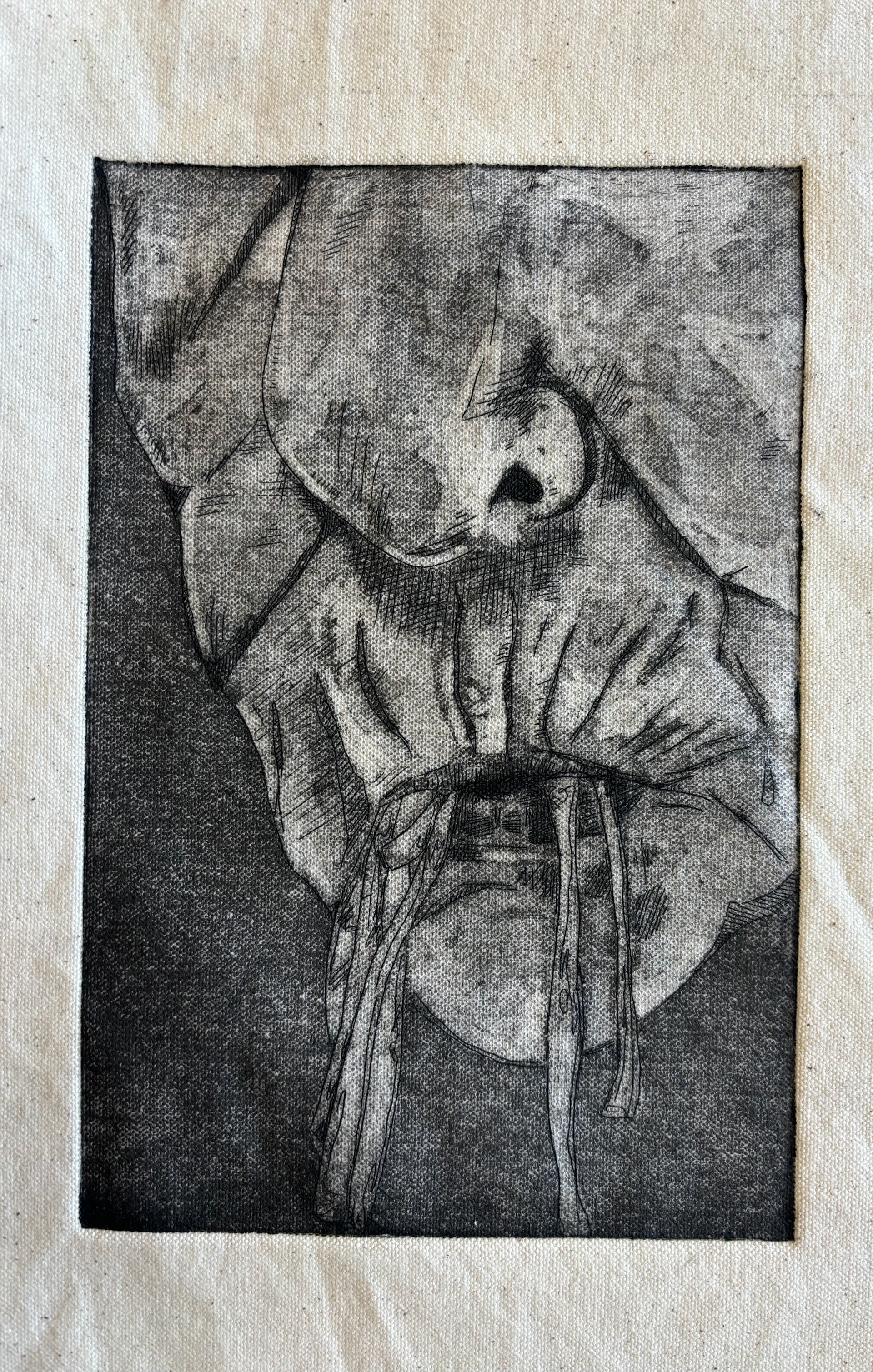 Canvas booklet printed with shaped and aquantinted zinc plates